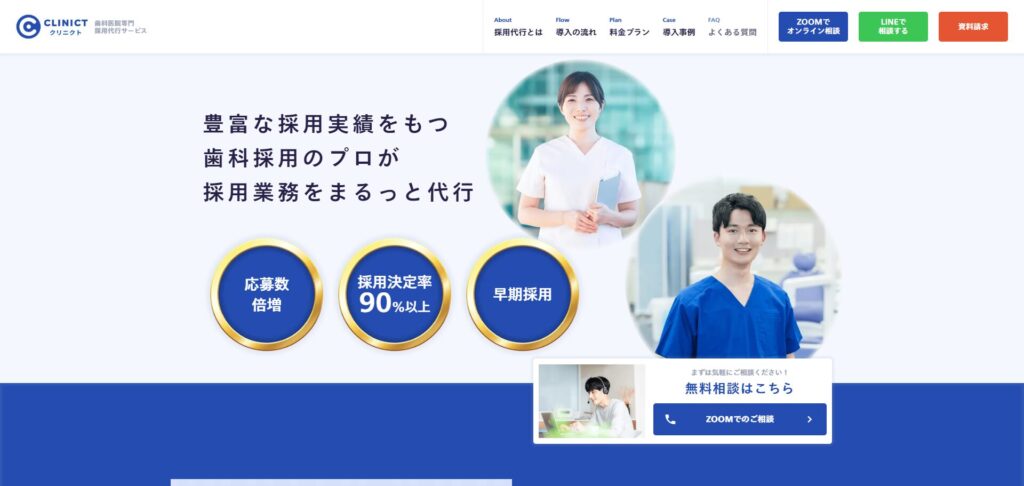 株式会社クリニクトは、歯科医院向けの採用代行サービスを提供する専門企業で、設立から短期間で全国200以上の歯科医院の採用支援を行ってきた実績があります。医療業界出身の専門家が関わることで、求人原稿の作成、応募者対応、面接日程の調整、条件交渉まで採用プロセス全体をトータルサポートし、医院側の負担を大幅に軽減します。